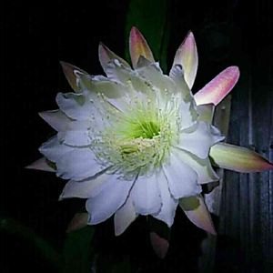 22時20分現在 🌵柱サボテンの花が開きました‼ 前回のサボテンが枯れてから、山に捨ててあったサボテンを拾ってきて鉢植えにして3年くらい やっとまた出会えました 直径20cmくらいかな 夕方から開き初めて朝方には萎んじゃうんだよ