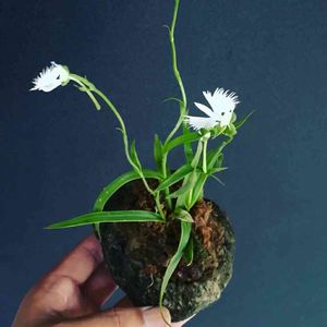 サギ草が開花しました。 高速道路のSAで蕾のものを購入したところ、帰宅してみるとなんと開花していました! 帰省中に購入してあった軽石の鉢に早速植え替えたりしていると、二羽目のサギが飛び立ちました。 初めての草物盆栽なので、サギ草の育て方などは全く知りません😁
