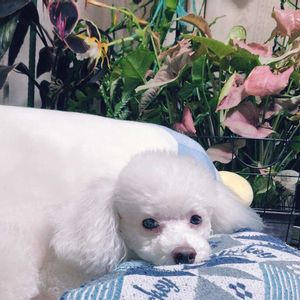 今日は、ワンワンの日でしたね。 久々に、カメラ目線が撮れたので、投稿します。 抱き枕ペンギンの腹に、🐶溶け込んでますね〜。