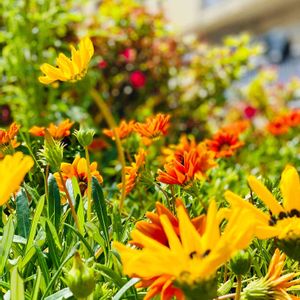 ガザニアビースト“カナリアスマイル” 少しずつ咲いてきました🙌 蝶々も翔んできています👍 直径40cmを超える大鉢にモリモリに育てていきたいと思っています💪