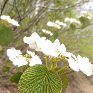 【ムシカリ】虫狩 紫陽花のようなお花ですが名前が『虫狩』 葉が虫によく食われるとして名付けられたそうです。 別名の『大亀の木』は、葉の形が亀の甲羅に似ていることによるものだそうです。 ネーミング面白いですね(≧∇≦*)