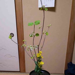 昨日のお稽古花🌼 花形 生花二種生 花材 ムシカリ、小菊