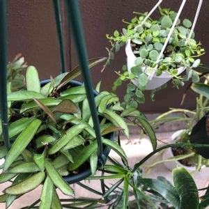 ☔️が強くなったので軒下で📸 GSの友人とお揃いでお迎えしたホヤのチャイナビーンさん💚新芽🌱がワチャワチャ出てきました😍❣️ 植え変えが怖くてそのままですが😅 長く伸びて欲しいです🥰 ロディゲシーさんも軒下が気に入ったのか新芽が沢山で嬉しいです🥰