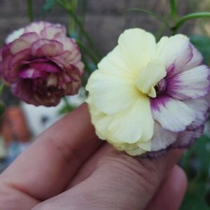 こんにちは╰(*´︶`*)╯♡ ラナンキュラス ラックス アイオリアさん🌸 ニュアンスカラーに目がない私😍 ネットでは良く見かける気になるアイオリアさんに出逢ってしまいました💕 秋にネットでポチらないで良かったよ〜💕 他のラナンキュラスと違ってこのアイオリアさんだけポットの土粘土状、お花も元気なさそうで葉っぱも少ない💦 迷い迷って一回離れて違うところへ また戻って手に取ってまた戻す😭 そして結局カゴへ😁 他にラナンキュラス2点👅 一昨日やっと一回り大きめポットに植え替えました(やっぱりあまり根が回ってなく元気ない💦) 土が粘土状、根を痛めないようにあまり崩さずそのまま植え替えました😳 お花枯れて葉っぱも枯れたら球根救出してあげるからそれまで腐らず頑張ってほしい🙏 🌫️/🌥️☔️ 9℃/3℃ ☀️☔️に弄ばれてます🤣 ちょっと陽射し出てきたとスマホ持って外に出た途端曇っていき小雨パラパラ😭 ☔️でシクラメンを取り込んで少ししたら☀️出てまた戻す 5回ほど🏠出たり入ったり繰り返し、10秒ほどの晴れ間にこの撮影🤣🤣🤣 この後☔️🌫️でしたが諦めてそのまま外に出してます🙋♀️ 風除室ばかりだと風通し悪いので陽射しなくても外で風に当ててます お昼現在5℃😁 5℃あれば春だなぁって思っちゃう私😆