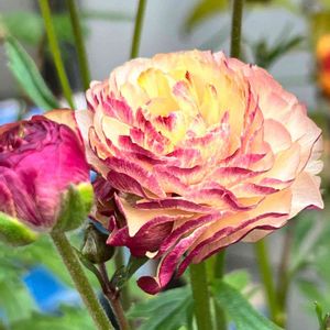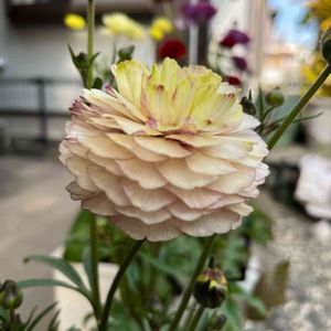 ラナンキュラスラックス アイオリア 大人可愛い感じの色合いですね☺️💕 風にふわふわ揺れて癒されます。