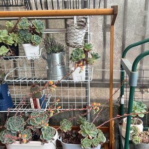 多肉たち 花が咲いてきました。 部屋に吊っていた峨眉山と雷神 ベランダに出しました。 晴れた日のベランダは暑いので、そろそろ遮光ネットを張らないといけません。