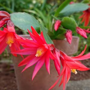ゲシクジャク ホシクジャク 別名 イースターカクタス サボテン科 イースターカクタス属 原産地 ブラジル 復活祭の頃に咲くのでこの名があるとのこと シャコバサボテンかと見間違いました(*ˊᵕˋ*)