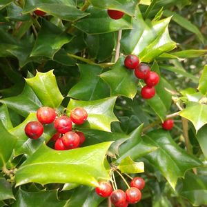 ヒイラギのような刺のある葉、赤い実、ヤバネヒイラギモチかな? 2023.4.5午前撮影