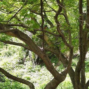 ヤマガラさんと目が合いました😆 中央に居るのわかりますか? 青々としたモミジが綺麗でした🍀✨