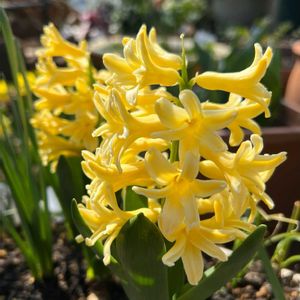 イエロー系寄せ植えから部分的に。全体像は最後。 存在感のあるヒヤシンスが咲いてこれで全部開花かな。今が一番華やかなので記録用に…