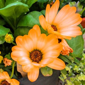 連投失礼します(⋆ᵕᴗᵕ⋆).+*ペコ ディモルフォセカ・パステリーナさんの🧺寄せ植え𓍼𓍢ִ໋🌷͙֒ 3週間経って、パステリーナさんの花数が増えてモリモリに(⁎˃ᴗ˂⁎)ワーイ♪
