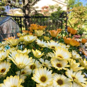 こんにちは 先日お迎えしたディモルフォセカをメインに寄せ植えを作りました💛💚 花材 ディモルフォセカ アリッサム ラナンキュラス グリーン ムスカリ ディモルフォセカはオステオスペルマムにそっくりですがこちらは1年草 開花期間が長く6月まで、花を咲かせてくれます。 我が家は宿根草が多いです でも最近、ガーデンの季節毎の切り替えができて、お手軽な一年草も悪くないなぁと思ってます( ˘͈ ᵕ ˘͈ ) そして6月にはアンゲロニアをお迎えする予定です。