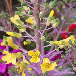 公園の花壇のハボタンが 成長して、菜の花みたいに 咲いています。🌿✨💗