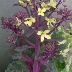 ハボタンの花。 黄色と紫のコントラストがいい感じ