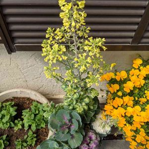 ハボタンにもお花が咲き始めました♫ これも菜の花と言えなくもない❓