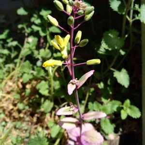 60から70cm位の高さの花です。葉っぱは下の方に、キャベツの様な葉っぱです。 名前を教えて下さい。