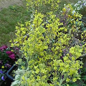 去年のハボタンに花が咲きました。 菜の花みたいなうすいクリーム色です。 タネを植えたらまたハボタン出てくるかな?😄✨