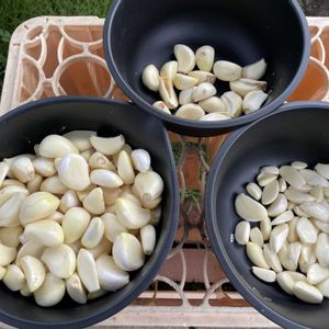 昨日、ニンニク植えました🧄小さいのはニンニクスプラウトに😊皮剥きが大変でした😆