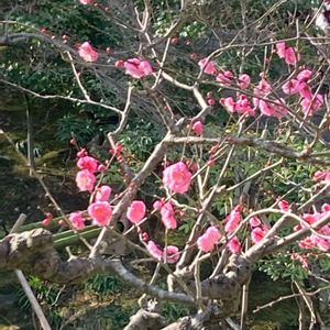 紅梅もきれいに咲いていました😊 蝋梅白梅紅梅が咲き、立派な庭園でした✨