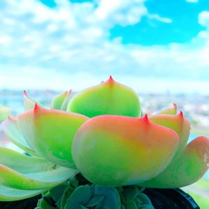 先日のサンリーフマーケットでお迎えした多肉ちゃん。 販売者の方も名前が分からないそうで… 知っている方教えてください(・ω・`人) インスタの方で千代田の松と教えていただきました。