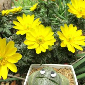 「ミズラ君、福寿草を見に行く」 とうとう庭にまで進出です(笑) 顔のバリエがないので 只今制作中で〜す。 って目玉だけですが(笑)