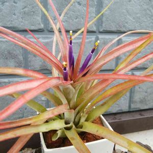 おはようございます! 昨日の台風は、大きな被害は、有りませんでした! チランジア:カピタータ開花 エアープランツですが、水ごけとバークに植えています!