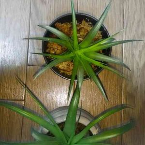 こんにちはー(^^) よいお天気ですね🎶 お客様から頂き物のーティランジア イオナンタ×ブルボーサ交配種♡ この子はブルボーサが強いです! 大切に育てます♡
