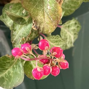 冬越しのため室内に取り込んだ ジュズサンゴ 💗❤️🤍🍃 実が艶やかに輝いて宝石みたい とってもきれい 3年目に向かって 大切にしたい一鉢です