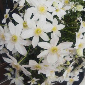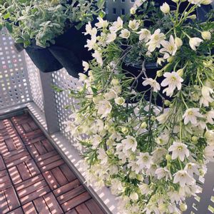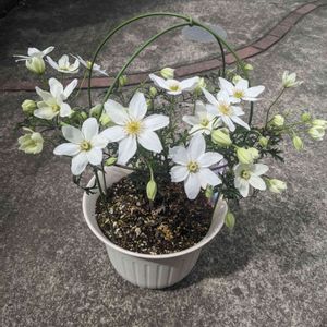 🌿🌼クレマチス🌼🌿 🌱🌼 カートマニージョー 3年前にお迎えした時からあまり茎が伸びてないのですがお花の数は、増えました🌼🌿 ハンキングで2本入っていますが数日前に29度の暑さになった時に日陰に寄せるの忘れて1本☆になりそうです💧 写真撮っておいて良かった。