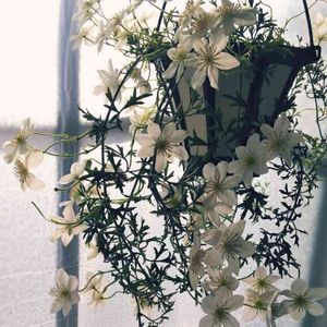 クレマチス カートマニージョー お迎えして二年目になりました。 沢山咲いてくれそう♡ 昨年は鉢植えにしていましたが、今年はハンギングバスケットで育てています。