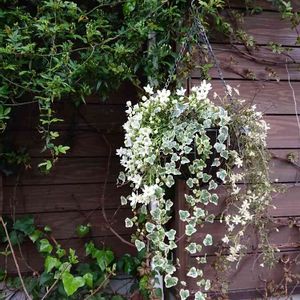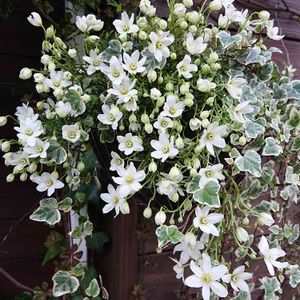 反対側には もう少し花が小さな ムーンビーム 長く伸びた ヘデラのホワイトワンダーも一緒に植えてます