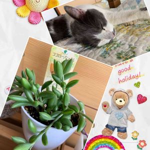 多肉シリーズ ☆横文字名前が出てこない…ブロウメアナ❗️でした😅 お花がやっとひとつ開き始めました🥰💕 ☆花芽がすこーし出て来たカランコエの紅提灯1年経つけど私の管理不足か大きくならなかった…😅💦 ☆カメラ鉢📷 映せないよねってぐらい溢れてきてます❤️ ☆右下の子は名前が分からず… どなたか教えて下さい🙇♀️ 何兎🐰ちゃんなのかなぁ❓ 何故か1本の枝が横になっていてこの見えている葉っぱが上に向かって伸びているんです⁉️ 不思議な子デス🤷♀️