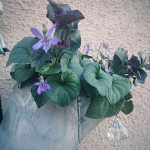 カタバミのようなちっちゃさで咲きだしました。 雪や霜でモシャモシャになったのにありがとうね😊 名前を間違えてたので修正します。 宿根すみれ 紫式部でした。