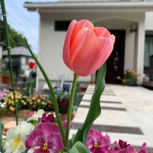 サーモンピンクのチューリップが咲きました🌷 何とも言えない淡い色合いがとっても可愛いです💖