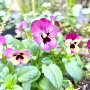 ヌーヴェルヴァーグのアクアレール とても濃い紫になりました💜 そして、奥から顔を覗かせてこっち向いてる子はプレミアムビオラ(兵庫県×地元園芸店コラボ)です👀 ひょっこりで可愛い♥️🥰