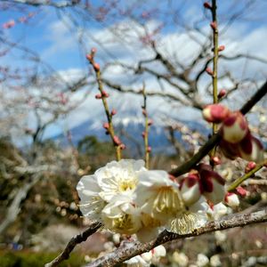 公園散歩 梅林にて 梅林の梅がほころび始めました 梅林からの富士山と雲 素敵な景色に 心もほころびました 静岡県では 今日は富士山の日 223 フ ジ サン (昨日のpicです)