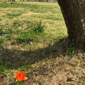 木の根元あたりに 何故か1輪 チューリップが咲いてたでコロン🌷 誰が植えたんだろ〜? 何年かしたら この子の子供とか増えてたら 嬉しいなぁ〜(●´ω`●)ニマァ