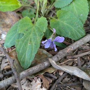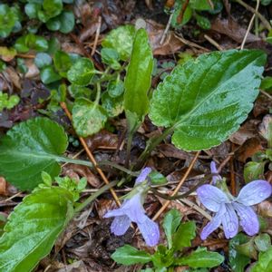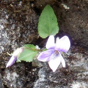昨日、スミレサイシン?と掲載したスミレを再び見に行きました。ノジスミレでは?とご意見頂きました。 同じ葉は幾つも見られるのですが、花は一つだけ。表だけでなく、花の裏側を写し、葉をはっきり写しました。 近畿地方の人里、市街地の早咲きのスミレの中から、特徴の合うスミレを探すと… コスミレ スミレ科 スミレ属ではないかと見ます。 特徴として、葉が根本が心型、全体は三角形で先が尖る、粗い鋸歯がある。距はずんぐり。葉も花も毛は無いようにみえる。 前回、バス道の歩道で見つけたスミレとした花は見当たりませんでした。 その他、紫金山公園へコバノミツバツツジを見に行く時、幾つもスミレを見つけました。少なくとも二種類あるようです。改めて後日掲載しますので見て下さい。