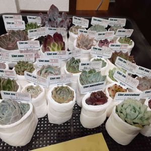 リエール多肉フェスティバルin横浜大桟橋ホールに行ってきました。 朝8時ぴったりに着き整理券は293と294😥 抽選の締切の9時頃には千番代軽く超えていました💦💦 スゴーイ😲 抽選は残念ながらハズレ😭ましたがパパさんとゆかさんと写真が撮れ、少しですがゆかさんとお話しができました✌️ 嬉しい💕💕 ついに手を出してしまった、初めてのリエール苗、まだ半年強位しか経たない初心者はよくわからないので形や色とお値段で決めました。元々、いくら以内で10個迄と決めていました、1番下の桃太郎は300円だったので…+プラスで👍 そしていちかわふぁーむさんのセダムもお迎え💕 とても楽しかったです。💕リエールさん横浜に来てくれてありがとう🙇♀️