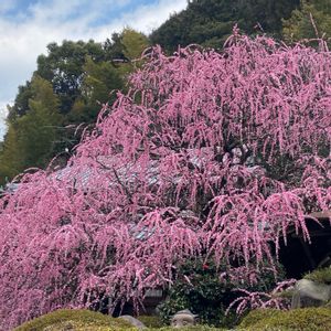 "見事な枝垂れ紅梅" 散策路沿いの農家、見事な枝ぶりの枝垂れ紅梅が満開を迎えていました。 桃ではないですが、ひな祭りに捧げます。 撮影日 2022.3.2
