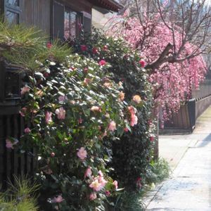 "素敵な和風家屋" 散策路沿い、椿花と枝垂れ紅梅に囲まれ趣のある素敵な和風家屋がありました。 撮影日 2022.3.9