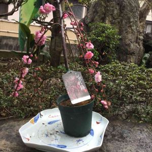 枝垂れ梅 さて何処へ植えようか思案橋中 植え付けは花が終わってからか秋口に しようかな〜 我が家の庭は前の持ち主さんが 大きな木は常葉樹を植えていて花がほとんど見られないし葉っぱが余り落ちない 私はお花が好きなので 植えたのはライラック 桜(娘が食べた種から撒いたもの) 昨年秋に購入した十月桜 そして今回の枝垂れ梅と合計4本 みんな落葉樹 山野草を植えた関係で落葉樹の方が 冬日差しが取り入れやすく 夏日差しを遮れる 少し大きくならないとではあるがね 後で地植えのしたのちの剪定方法と 管理の確認しなくちゃね