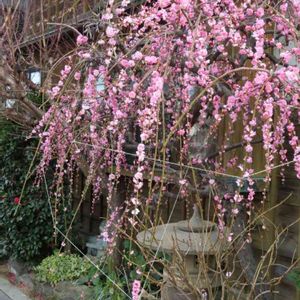 腕散歩道ご近所の 枝垂れ梅アップ画像