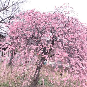 近所のお宅の 立派なしだれ梅 花数が多いから とても華やかです 家の庭には収まらない サイズの木です