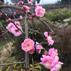 近所を散歩中にピンクのしだれ梅がほぼ満開🌸で咲いていました✨😊✨ きれいです🎶