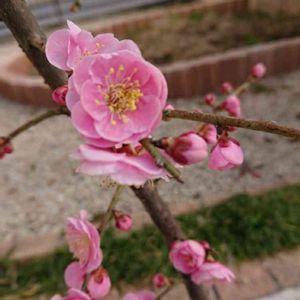 しだれ梅、まだ小さい木だけどキレイな花が咲きました😃 毎年咲いてもらえるようにお世話しないと🌼