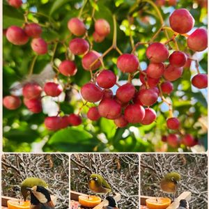 今日は久しぶりの晴天、大掃除日和 マサキの実がたくさんなっていますが野鳥はまったく来ません。 ⛰️の果樹園に美味しい果物がいっぱいあるからね。 ↓山の友人宅のベランダ 後から来たメジロと仲良く食べていた。 数秒もしない間にヤマガラの腰が退けて来たと思ったら、新参者のメジロに大きな口を開けて威嚇されてしまいました。