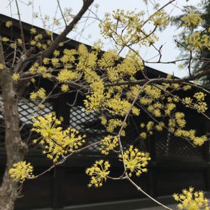 黄色い小花が集まって咲いている 💛サンシュユ💛 『春先に、葉が出る前に黄色い花を咲かせ、秋には紅葉とともにグミに似た赤い実を付ける』 15日㈯ 中山寺にて 山門から本堂までの道の脇に❀