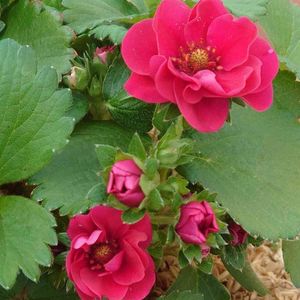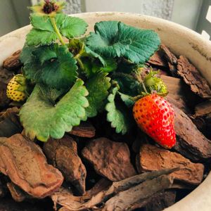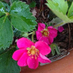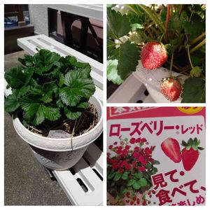 🏷️🍓の日 ⬅️奥羽山脈を越えてお迎えしたワイルドストロベリー、根付いたよ💕 ↗️ローズベリーレッド、赤い花に魅せられてお迎え💕 ↘️あさみさんの🍓鉢 まだまだ土を入れられないよ~🥰