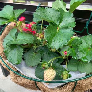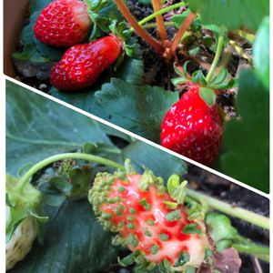 四季なりイチゴのローズベリーレッド🌹🍓 第二期収穫期到来🥳✨🎉 毎日イチゴ赤くなります😊 また、20個ほど実ができて、 花が咲くのは一旦ストップしています🚫 写真撮り忘れたけど一期とニ期の間に、 ドデカイチゴがひとつだけ出来て、 その子だけは甘くなっていました😍 やっぱり大きいいちごは美味しいです🍓 全く同じ種類のイチゴを私の実家にも植えていますが、 日当たりが悪いからか、まだ、5個ほどしか実っておらず、全然赤くならないらしいです。 うち、南西のベランダで日当たりだけはとても良いので。 おかげさまか、すくすく育っています🍓✨ ただ、一日中、日当たり良すぎて 昨年の夏は8月入ってハーブとかも全部枯れてしまったので😭 今年はうまく対策していこうと思います💦 GSの皆様いい方法あればぜひ教えてくださいね♬😊